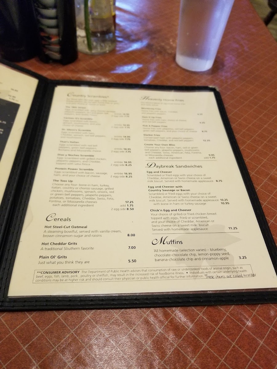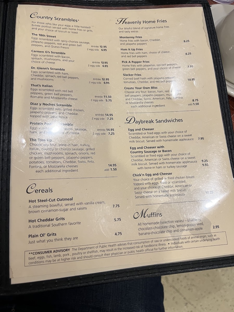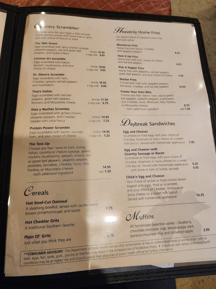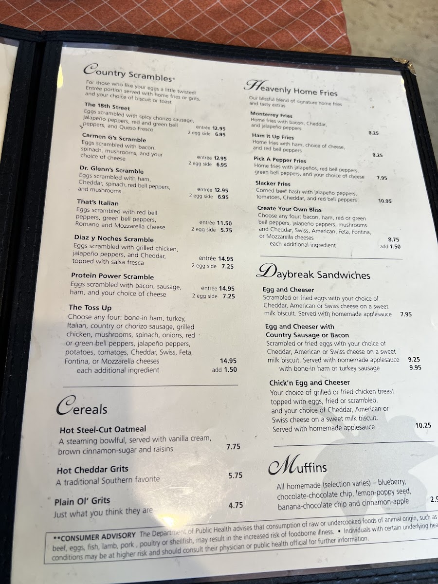 Scrambled or fried eggs with your choice of Cheddar, American, or Swiss cheese on a Sweet milk biscuit. Served with housemade applesauce
